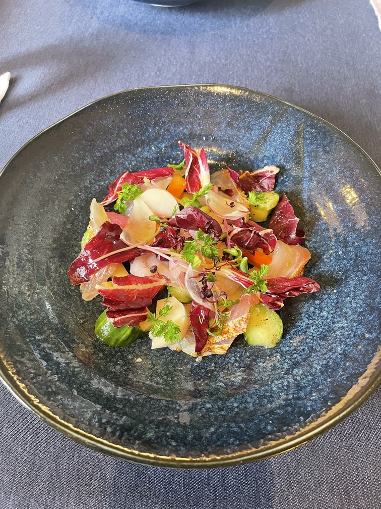 数種類の海の幸のカルパッチョですが、1品料理分ぐらいのボリュームで美しいです。